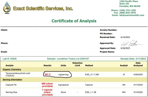 60 cápsulas de TUDCA probado por terceros por botella 300mg TUDCA por cápsula, solo una cápsula por porción TUDCA, sin OMG, sin soja ni gluten Ácido taursodesoxicólico Probado por terceros – SIEMPRE – Nuestro TUDCA ha revolucionado la forma en que la industria de suplementos hace las cosas, sin compromiso asegurando que cada lote que hacemos sea probado por terceros para pureza y potencia, y fabricado en una instalación cGMP e inspeccionada aquí en los Estados Unidos.