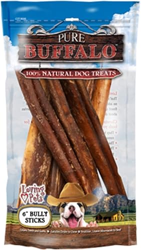 Loving Pets Pure Buffalo - Golosina para perros Bully Stick de 6 pulgadas, paquete de 6