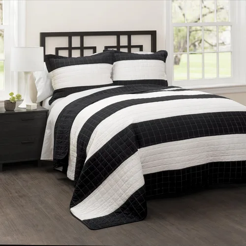 Lush Decor New Berlin - Juego de cama de 3 piezas con diseño de rayas, tamaño matrimonialqueen, negro y blanco
