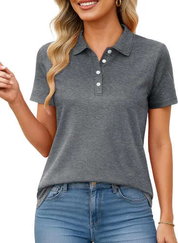 MAGCOMSEN Camisas polo de manga corta para mujer, de secado rápido, camisetas de golf con cuello para trabajo, casual, 4 botones