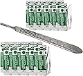Bisturíes desechables de acero inoxidable estéril tamaño 10A con mango de plástico y línea métrica envuelta individualmente en papel de aluminio,