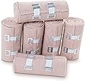OBTANIM 6 rollos de vendaje elástico con 12 clips adicionales, cinta elástica de compresión de 6 pulgadas x 15 pies para médicos, deportes