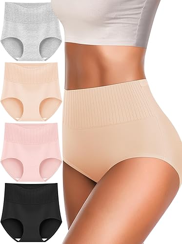 MEIYATING Ropa interior de algodón para mujer, de talle alto, cobertura completa, paquete múltiple