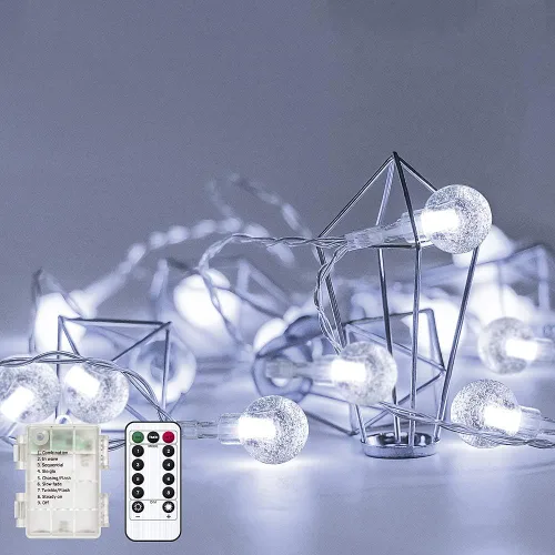 Luces mejoradas para exteriores con forma de globo: cadena de luces para exteriores de 16.4 pies con 50 globos de cristal LED superbrillantes. Cada globo tiene un diámetro de 0.689 in, que es mucho más grande que los demás. ¿Cuál es la diferencia? Significa que puedes obtener un mayor brillo y efectos de iluminación más hermosos. A diferencia de otras luces de hadas de alambre negro, esta cadena de luces de batería utiliza PVC transparente para envolver la cuerda, por lo que es consistente con el estilo de globo de cristal Temporizador y 8 modos, regulable y memoria: 10 niveles de ajuste de brillo y 8 modos de iluminación para elegir: 1. Combinación 2. Onda 3. Secuencial 4. Brillo lento 5. Persecución 6. Desvanecimiento lento 7. Brilla 8. Encendido constante. Coloca las luces blancas cálidas durante 6 horas encendidas y 18 horas apagadas con el temporizador, obtén el modo de iluminación actual cuando vuelvas a poner las luces parpadeantes. Buena idea para dormitorio, árbol de Navidad, corona de Navidad, chimenea, dormitorio, sala de estar Tira de luces LED para interiores alimentadas por baterías: deja de desperdiciar tu dinero en tiras de luces solares y tiras de luces enchufables que no proporcionan iluminación de alto brillo y uso seguro. Estas luces de Navidad funcionan con 3 pilas AA (no incluidas), salida de 4.5 V de bajo voltaje que mucho más bajo que el voltaje de seguridad del cuerpo humano de 36 V, absolutamente sin riesgos de seguridad, sigue siendo fresca al tacto después de un uso prolongado, segura para familias con niños Luces colgantes impermeables para exteriores: tira de luces decorativas de grado impermeable IP67 que se pueden sumergir en agua, funda de batería de grado impermeable IP65 que puede resistir el lavado del agua de lluvia. Esta luz LED de luciérnaga puede soportar todo tipo de clima durante todo el año. Impresionantes luces decorativas para exteriores para patio, cenador, bistró, cubierta, jardín, balcón, camino, césped, patio trasero, paisajismo 【Decoración navideña blanca cálida de larga vida】Con la protección del tubo de PVC, las cuerdas no se rompen ni se oxidarán para obtener una vida útil más larga. La iluminación blanca cálida pasa a través del globo de cristal y se refracta para producir un efecto de iluminación de ensueño. A medida que cambia el modo de parpadeo, la cadena de luces estrelladas es como las estrellas brillantes en el cielo. Adecuado para muchas ocasiones como Halloween, Navidad, día de Acción de Gracias, etc