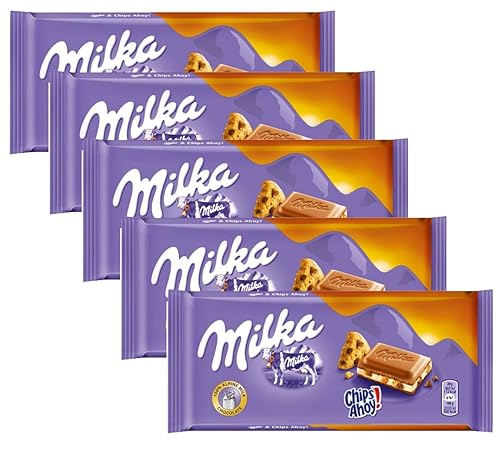 Milka Barras de chocolate: paquete de 5 barras de chocolate con leche ¡Ahoy! Disfruta de 5 barras de chocolate con un peso de 3.5 onzas Perfecto para regalos, celebraciones o aperitivos Milka Sabor clásico de chocolate con leche Barras envueltas individualmente para mayor comodidad
