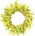 Naisicore Forsythia - Corona de primavera de Forsythia artificial amarilla de 20 pulgadas, decoración de guirnalda colgante de puerta delantera,