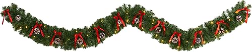 Nearly Natural Guirnalda de Navidad artificial con lazo y piña de 9 pies con 35 luces LED transparentes