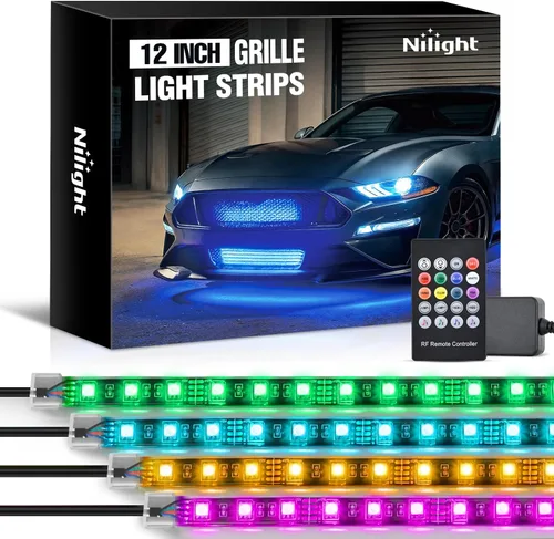 Nilight Juego de 4 luces LED de 12 pulgadas, 72 luces LED RGB multicolor, con función activa de sonido y control remoto inalámbrico para coches,