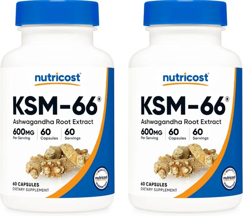 Nutricost KSM-66 Extracto de raíz de Ashwagandha 600 mg, 60 cápsulas vegetales (2 botellas) - 5% Withanólidos - con BioPerine
