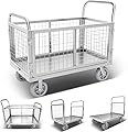 Carrito de Plataforma con Jaula, Multiusos 6 en 1 Plegable Carrito de Plataforma Plana Carrito de Empuje Resistente Diablito con Ruedas Giratorias