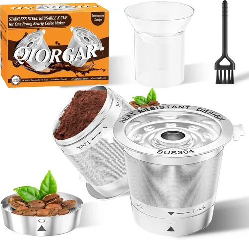 Compruebe antes de comprar: solo para máquinas Keurig 1.0 y 1 puntas. No es compatible con Keurig 2.0, K-Supreme, K-Slim, K-Duo Hot & Iced y filtro de papel Sabor puro, cero microplásticos: a diferencia de los filtros de plástico que filtran productos químicos y microplásticos, nuestras tazas K de acero inoxidable 304 para keurig garantizan una experiencia de café limpia y inalterada. Sin regustos extraños, sin problemas de salud, solo el rico y auténtico sabor de tus frijoles, exactamente como la naturaleza lo pretendía Sin sello de silicona, sin suciedad oculta: deshazte de los residuos molestos y desordenados de las juntas de silicona para siempre. Nuestra cápsula de café reutilizable de silicona sin sello es la solución permanente que has estado esperando: enjuagar limpio en segundos y diseñado para años de uso. Es una tranquilidad duradera en cada taza Agarre confiable: no más dedos quemados o vertidos temblorosos. Nuestras asas ergonómicas y dobles resistentes al calor están diseñadas para la vida real, se mantienen frescas después de la preparación para proporcionar un control seguro y sin esfuerzo. Porque tu ritual de café debe definirse por el sabor, no por el miedo Ecológico y económico inteligente: deshazte del ciclo interminable de cápsulas desechables y filtros de papel. Nuestro diseño reutilizable reduce tus costos y huella ambiental con cada preparación. Ahorra dinero para tu próxima aventura y disfruta de orgullo: un gran café que ama el planeta Kit completo de preparación: prepara de inmediato con 2 K Cups recargables duraderas, un práctico embudo de llenado y un cepillo de limpieza de precisión. Diseñado específicamente para máquinas Keurig de una punta, es tu boleto todo en uno para el café de nivel de barista en casa