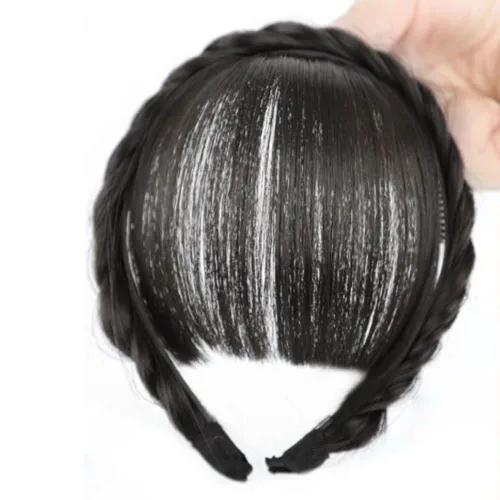 Peluca de cabello falso con flequillo, extensión de pelo con flecos, diadema para mujer con clips, sin patillas, negro natural