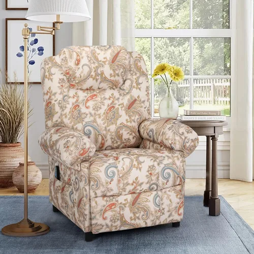 KCREAM Recliner Chair Heated Reclining Chair Sofa Ergonomic Fabric Lounge Chair for Living Room Single Sofa Chair Padded Seat with 2 Side Pockets,