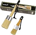 Pinceles de pintura de tiza para muebles, 2 piezas de cerdas de pelo de jabalí redondas/planas para pintura de cera, adecuados para pintura de tiza