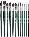 Juego de pinceles para artistas, 12 piezas de pinceles de acuarela profesionales, pinceles de acuarela - redondos, planos, lineales, filbert,