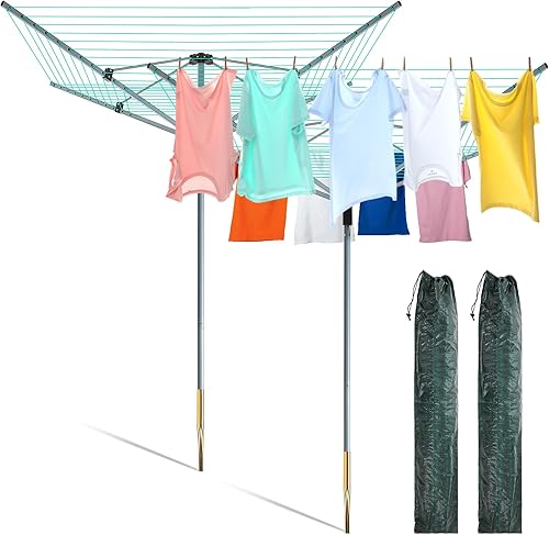 Brabantia Lift-O-Matic Tendedero de 4 brazos para exteriores (164 pies/Ø 1.8 pulgadas) altura ajustable, tendedero plegable + estaca y cubierta para