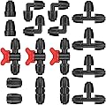 Pawfly 17 Pcs Drip Irrigation Fittings Kit for 1/2" Tubing, Barbed Drip Line Connectors with 4 Tees, 2 Standard Couplings, 3 Flow-Control Couplings,