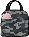Fiokroo Bolsa de almuerzo aislada de camuflaje militar, lonchera de camuflaje negro y gris, reutilizable, bolsa de almuerzo para escuela, trabajo,