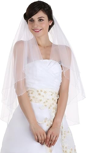 SAMKY 2T 2 niveles cristal con cuentas de borde velo de novia nupcial