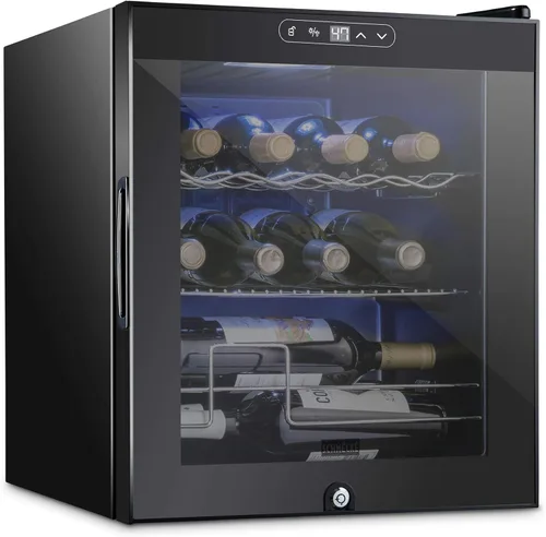 Schmecke - Refrigerador de vino con compresor de 12 botellas con cerradura | Gran bodega independiente | Refrigerador de vino digital 41f-64f con