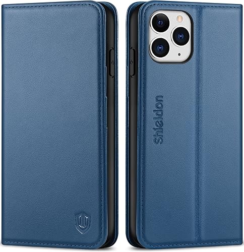 SHIELDON Funda tipo cartera para iPhone 11 Pro Max, de piel auténtica, magnética, bloqueo RFID, ranuras para tarjetas, soporte a prueba de golpes