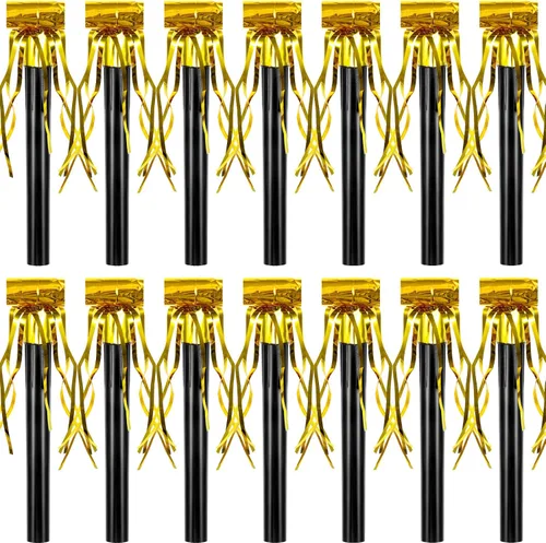 Contenido del paquete: el paquete viene con 18 piezas de bandas doradas con purpurina, cantidad adecuada y bonitos colores para que puedas decorar varios tipos de fiestas Dimensiones adecuadas: cada explosión musical mide aproximadamente 5.1 pulgadas de largo, tamaño adecuado que puede ser sostenido fácilmente por personas, ligero y portátil para llevarlo contigo Seguro de usar: estos ruidos de fiesta de cumpleaños están hechos de plástico de calidad, que es seguro y no tóxico al tacto, no es fácil de romper o rasgar, confiable de usar durante mucho tiempo, adecuado para crear un ruido divertido e interesante, útil para llamar la atención de la gente en la fiesta Aplicaciones versátiles: estos divertidos ruidos de fiesta pueden producir sonidos divertidos y alegres y animar el ambiente de la fiesta, se pueden aplicar para decorar fiestas de Año Nuevo, fiestas de Navidad, fiestas de cumpleaños, despedidas de soltera, celebraciones y otras fiestas Accesorios de fiesta: estos silbatos musicales pueden vibrar furiosa y rápidamente, que son útiles para formar sonidos interesantes y efectos visuales alegres, traerán un ambiente divertido a fiestas en la calle, eventos de reunión, actividades deportivas y mucho más