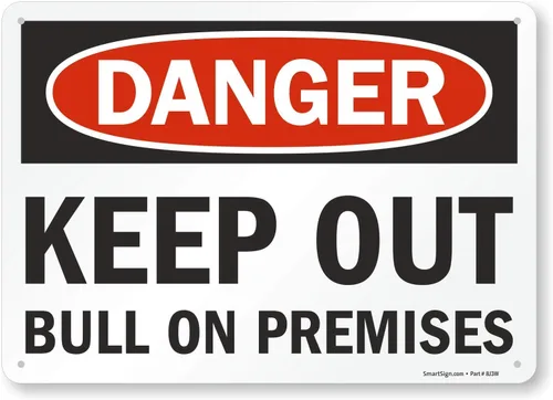 Pregunta sugerida sobre SmartSign -S-8624-Pl-14 Cartel "Danger - Keep Out Bull on Premises" Plástico de 10 x 14 pulgadas, negro/rojo sobre blanco ¿Este producto sí me sirve para lo que necesito?