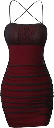 100% poliéster Imported Cierre de Pull on Vestido sexy bodycon tipo camisola Tela suave y cómoda, la tela es ligeramente elástica Características: tirantes delgados, fruncido, cruzado, malla, sin mangas, mini vestido ajustado, a la moda Ocasiones adecuadas: ideal para uso casual, vacaciones, fin de semana, fiesta, club, citas, vida diaria y salidas Recomendación de tallas: consulta la tabla de tallas que proporcionamos en nuestras fotos (no la de Tienda)