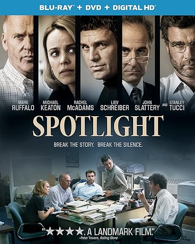 Michael Keaton, Mark Ruffalo, and Rachel McAdams lead a critically acclaimed cast in this gripping true story about the Pulitzer Prize-winning investigation that uncovered a scandal that rocked one of the world's oldest and most trusted institutions. Delving into allegations of child abuse within the local Catholic Archdiocese, a tenacious team of Boston Globe reporters exposes a decades-long cover-up that reaches the highest levels of Boston's religious, legal, and government establishment. "Brilliantly acted and flawlessly directed" (New York Post) Spotlight is a powerful and riveting drama the critics are calling "the All the President's Men of our time" (Los Angeles Times).Bonus Content: Includes a digital copy of Spotlight (Digital Copy redemption code subject to expiration. See product insert for details.) Uncovering the Truth: A Spotlight Team Roundtable Spotlight: A Look Inside The State of Journalism