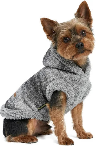 Fitwarm Suéter mullido para perro, ropa de invierno de punto para perros pequeños, niños y niñas, atuendo con capucha para gatos y mascotas, gris