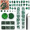 4 Boxes Emerald Green Rhinestones Glitters 24 Shapes K9 Glass Gems Stones Flatback Round Diamonds Crystals Nail Art Charms Supplies for Nails Faces