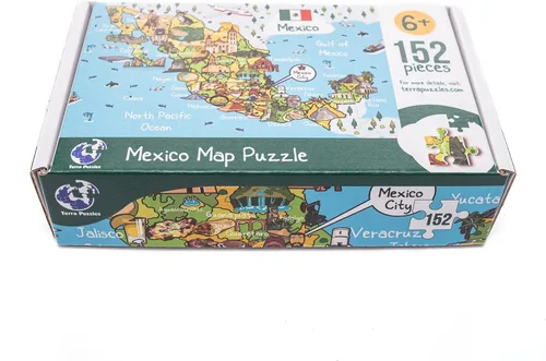 Terra Puzzles Rompecabezas de 152 piezas de mapa de México, 10 x 15 pulgadas, para niños de 6 años en adelante