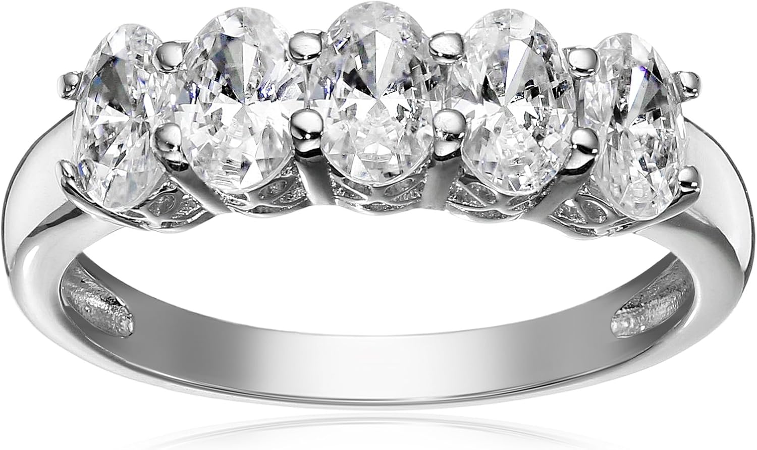 - Juego de anillos de plata de ley chapada en platino o oro con 5 piedras ovaladas hechas con circonitas de Swarovski Un anillo de tamaño 9 hecho de plata de ley chapada en platino garantiza un ajuste cómodo y un producto de alta calidad Este diseño de joyería fue fabricado con los más altos estándares de calidad. Se están haciendo todos los esfuerzos para utilizar recursos sostenibles y proveedores socialmente responsables. Cada circonita de Swarovski está grabada con láser como un sello de autenticidad y garantiza la más alta calidad de diamante simulante en el mundo Importado Estas piezas de plata están construidas para la longevidad. Esta pieza cuenta con un chapado de metal o parpadeo, o un recubrimiento electrochapado para una apariencia más lustrosa, pero puede desgastarse con un uso prolongado o intensivo. Para garantizar la longevidad de tus artículos chapados, guarda tus joyas en un lugar oscuro, fresco y seco, como una bolsa o caja hermética y evita frotar los artículos chapados. También evita la exposición a productos de limpieza y perfume que puedan afectar negativamente a tus artículos. Tu joyero local puede asesorarte dónde enviar tus joyas si te gustaría volver a chaparlas.