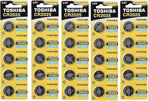 Calidad Premium Toshiba: Excelencia en ingeniería japonesa Tipo de batería: Celda de moneda de dióxido de manganeso de litio, 3.0V Alta potencia: 150 mAh, 0.787 in de diámetro, 0.126 in de altura, vida útil de 10 años Paquete: Toshiba original, 5 baterías por tarjeta, diseño de tira de lágrima Uso versátil: ideal para relojes, rastreadores de fitness, llaveros de llaves, dispositivos de atención médica y más Compatibilidad: Replaces BR2025, DL2025, ECR2025