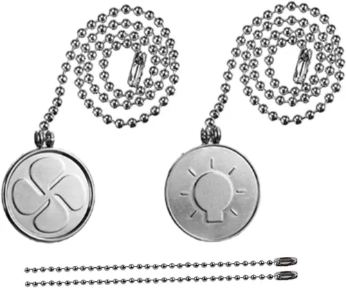 El producto incluye: El juego de cadena de tracción del ventilador de techo incluye un patrón de ventilador de latón antiguo de diseño en forma de moneda. 1 extensión de cadena de bombilla con forma de moneda de 12 pulgadas 1 extensión de cadena con forma de moneda de 12 pulgadas de longitud. Descripción del producto: Juego de cadena para ventilador de techo Este es un extensor de cadena de tracción especialmente diseñado para su luz de celda, ventilador de celda, lámpara de escritorio, etc. Especificaciones: Tamaño del colgante: Dia 32 Longitud de la cadena: 12 pulgadas Diámetro de cada cuenta: 0.118 in Material de la cadena: latón. Material del colgante: cristal. Color de la cadena: níquel cepillado. GRAN PARA UNA ACTUALIZACIÓN Repara o reemplaza una vieja cadena de tracción con esta resistente pieza de conversación totalmente metálica El diseño de cable de luz y ventilador te ayuda a tirar de la cadena correcta a partir de ahora