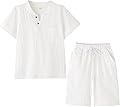 Conjunto de camiseta y pantalones cortos de algodón y lino de verano de manga corta para niños de dos piezas conjuntos de pantalones