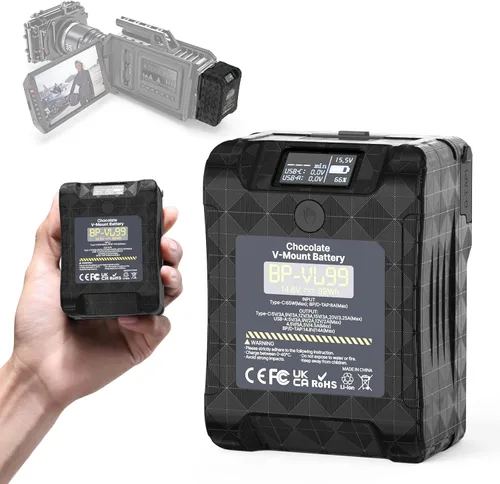 【Multiple Interfaces】This V mount battery comes with USB-C, USB-A, DC Port, 2*D-TAP ports, which are more versatile and support powering multiple devices simultaneously, such as various camera gears including camcorders, field monitors, image transmitters, even charging tablets, smartphones and other mobile devices during your trip. 【65W Bi-direction PD Fast-Charging】With the upgrade USB-C bi-directional PD fast charging up to 65W, you can charge it through V mount or D-TAP traditionally with large adapter or simply with USB-C Cable that share the same charger with your smartphone, tablet or laptop. Skipping the hassle of bringing tons of batteries and chargers, and making your charging faster. 【Sufficient V-mount Battery】 V mount battery with high capacity of 26000mAh(5V), 6700mAh(14.8V) built-in premium Li-battery to bring powerful battery life for long video making and photography projects, good power backup solution for photographers and filmmakers. 【Mini & Portable V Mount Battery】Palm size, only 3.97*2.89*2.03 inches, only 1.21 lbs, smaller than traditional V-mount batteries, feel free to carry outside and travel. And you can also keep track of the battery's working status at all times via its OLED screen. 【Battery Safety Protection】Built-in intelligent protection system to prevent battery overcharge, overvoltage, overcurrent and short circuit to ensure safety and stability.