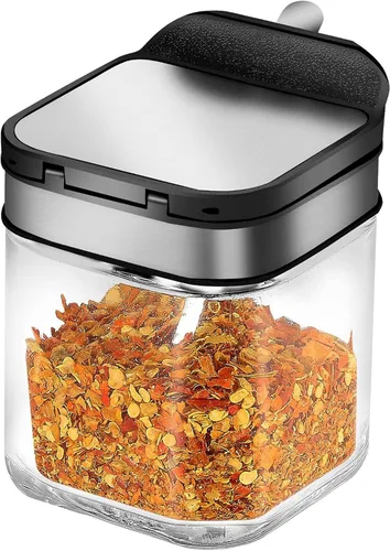 Especificaciones: color transparente, limpio y ordenado Materiales preferidos para un uso saludable Diseño especial, elige mucho Traje con una vida conveniente Color: negro Material: acero inoxidable 304/grado alimenticio PP/vidrio sin plomo Tamaño: lata individual: 4.1* 8.7.5 in, conjunto de 2 sabores: 6.7* 3.3 in, conjunto de 3 sabores: 10.2* 4.3* 3.3 in Contenido del paquete: 3 recipientes de especias de vidrio con 3 tapas inoxidables. Cucharas de servir de acero Solo el contenido del paquete anterior, otros productos no están incluidos. Nota: La toma de luz y las diferentes pantallas pueden causar que el color del artículo en la imagen sea un poco diferente del real. El error de medición permitido es de +/- 0.4-1.2 in.