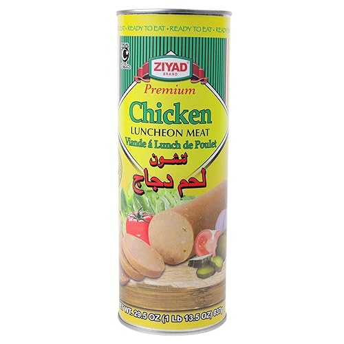 La carne de almuerzo de pollo prémium de la marca Ziyad es un delicioso pan halal, listo para comer que pronto se convertirá en uno de los imprescindibles de tu despensa. Perfectamente sazonada, nuestra carne de almuerzo está lista para comer directamente de la lata, cortarla finamente y cómela con galletas o ponerla en capas con queso, tomate y lechuga en un sándwich. ¡Conviértelo en la estrella de tu plato freírlo! Las piezas saladas, saladas y crujientes complementarán huevos, arroz, fideos y casi cualquier otra cosa. Sé creativo con él y haz Halal Musubi, el popular aperitivo hawaiano que consta de arroz bien empaquetado y carne frita enlatada envuelta en nori (algas). Una adición fácil a muchas comidas, te proporcionará 0.25 oz de proteína por porción y solo 120 calorías, muchas menos calorías que otras carnes de almuerzo enlatadas. La carne de almuerzo de pollo Ziyad es estable en el almacenamiento, perfecta para preparación de emergencias, bancos de alimentos y campamento. Se requiere refrigeración solo después de abrir.